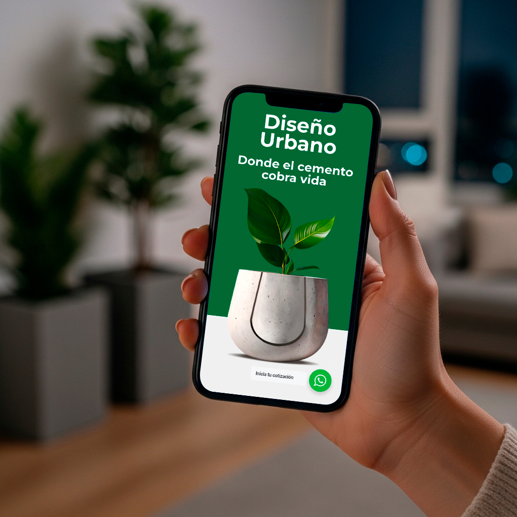 El desafío con Diseño Urbano fue elevar un material industrial y robusto como el concreto a una categoría de diseño premium y orgánica. Bajo el concepto de usar el concreto como material clave para el diseño de espacios elegantes y estéticos, desarrollamos un sistema de identidad que equilibra la solidez de la construcción con la delicadeza de la naturaleza.
